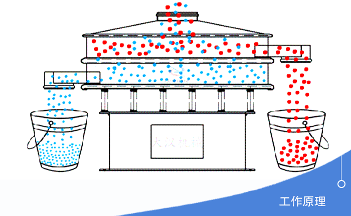 不銹鋼旋振篩分機采用直立式電機作激振源,當篩機啟動后,電機上、下兩端安裝的偏心重錘,將電機的旋轉(zhuǎn)運動轉(zhuǎn)變?yōu)樗?、垂直、傾斜的三次元運動,再把這個運動傳遞給篩面。在此過程中,小于篩面孔徑的物料通過篩孔落到下層,成為篩下物,大于篩面孔徑的物料經(jīng)連續(xù)跳躍運動后從排料口排出,用戶通過調(diào)節(jié)上、下兩端重錘的相位角,可以改變物料在篩面上的運動軌跡,從而設計實現(xiàn)對物料的篩分。