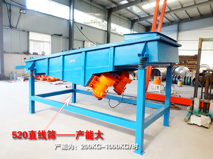 【產(chǎn)能】520直線篩的產(chǎn)能為:200KG-1000KG/時(具體根據(jù)物料特性、網(wǎng)目大小、篩機層數(shù)了解詳細產(chǎn)能)