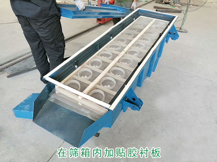 可在篩箱的側(cè)板、入料給料口、排料口內(nèi)加貼橡膠襯板,可以有效地抑制篩分機(jī)側(cè)板的高頻振動,減少輻射噪聲;在篩箱結(jié)構(gòu)的設(shè)計(jì)中,要考慮到篩箱的剛度,采用合適的側(cè)板剛度來減小振動,降低中低頻噪聲波。